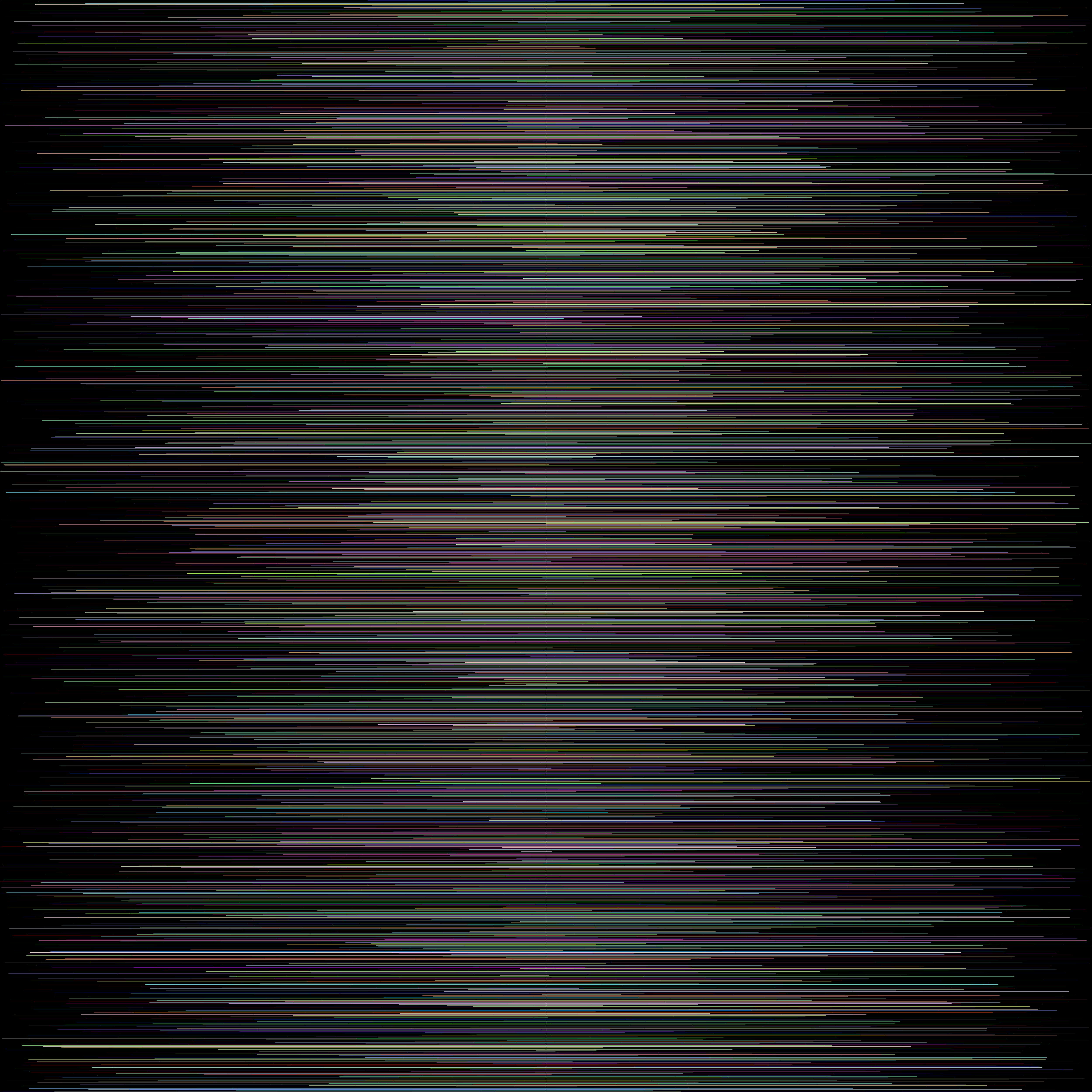 Constituée de 10 000 lignes horizontales de couleurs et de longueurs différentes qui cohabitent entre elles dans un espace restreint et défini. Ces “vies” d’intensité et de durée différentes sont toutes positionnées relativement à une unique ligne verticale blanche symbolisant l’instant présent dans sa plénitude et sa fugacité – en opposition au noir-néant de l’ensemble des éléments en amont et en aval de cette ligne qui n’existent plus ou pas encore.
